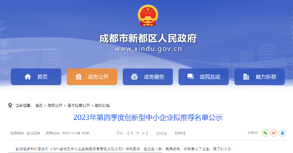 恭喜四川艾能捷科技有限公司入選2023年度四川省創(chuàng)新型中小企業(yè)公示名單! 近日,四川省經(jīng)濟(jì)和信息化廳發(fā)布了公示名單,四川艾能捷科技有限公司等一批優(yōu)秀的中小企業(yè)入選2023年度四川省創(chuàng)新型中小企業(yè)名單。這一榮譽(yù)對于四川艾能捷科技有限公司來說無疑是對其創(chuàng)新能力... -